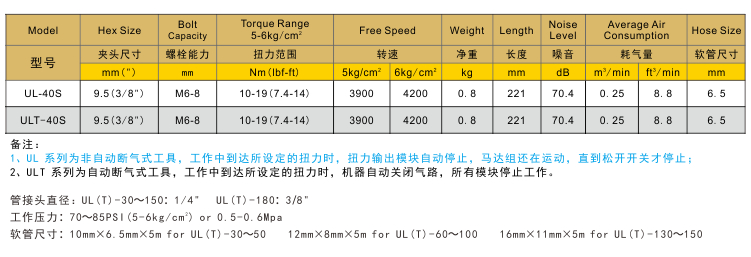 除小功率機(jī)器外,正常氣動(dòng)工具使用時(shí)的穩(wěn)定工作氣壓為0.65Mpa,瞬時(shí)壓降應(yīng)不低于0.05Mpa;小功率機(jī)器除外,推薦使用內(nèi)徑8mm氣管,大功率氣動(dòng)扳手、風(fēng)炮、氣鏟、風(fēng)鎬等產(chǎn)品最少使用13mm內(nèi)徑氣管。