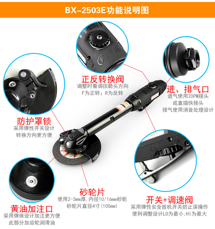超薄加長氣動角磨機BX-2503E