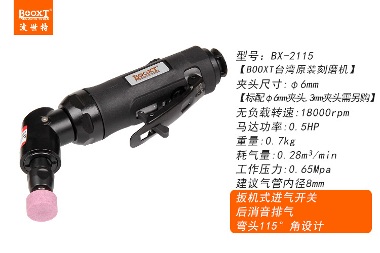 東莞市強勁五金工具有限公司提供臺灣BOOXT波世特品牌氣動工具,115度彎頭刻磨機BX-2115廠家直銷,首件享特價。咨詢熱線:4008301980