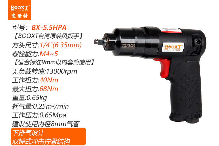 東莞市強(qiáng)勁五金工具有限公司提供臺(tái)灣BOOXT波世特品牌氣動(dòng)工具,輕型風(fēng)扳手BX-5.5HPA廠家直銷(xiāo),首件享特價(jià)。咨詢(xún)熱線:4008301980