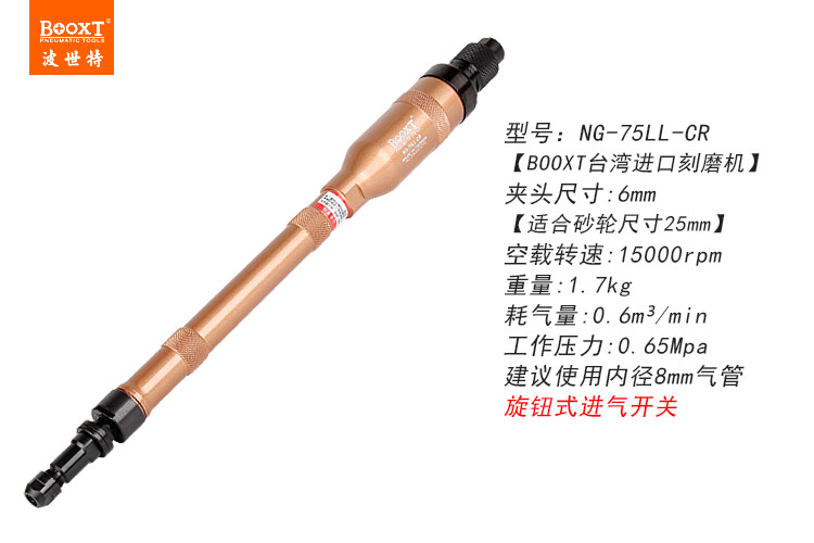 東莞市強勁五金工具有限公司提供臺灣BOOXT波世特品牌氣動工具,加長氣動內磨機NG-75LL-CR廠家直銷,首件享特價。咨詢熱線:4008301980