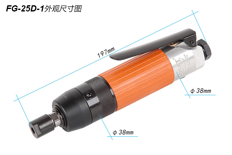 • 產(chǎn)品參數(shù): 夾頭能力:M3,6 (標(biāo)配M6) 馬達(dá)功率:0.32HP 空載轉(zhuǎn)速:24000rpm 工具能力:砂輪磨頭M25,旋轉(zhuǎn)銼刀M13 耗 氣 量:0.4m3/min 全 長(zhǎng):197mm 重 量 : 0.7kg 【扳機(jī)開關(guān)/超高同心度】