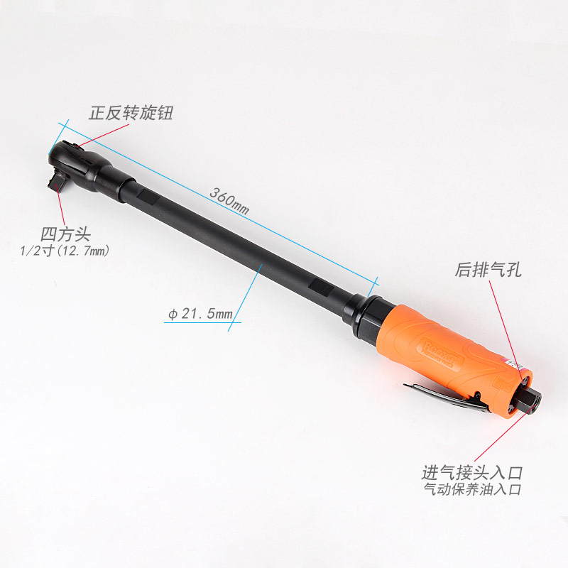加長深孔氣動扳手特點:(重力壓鑄外殼,強度更高不變形,提高耐用度)