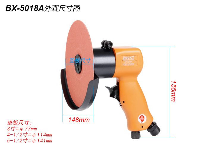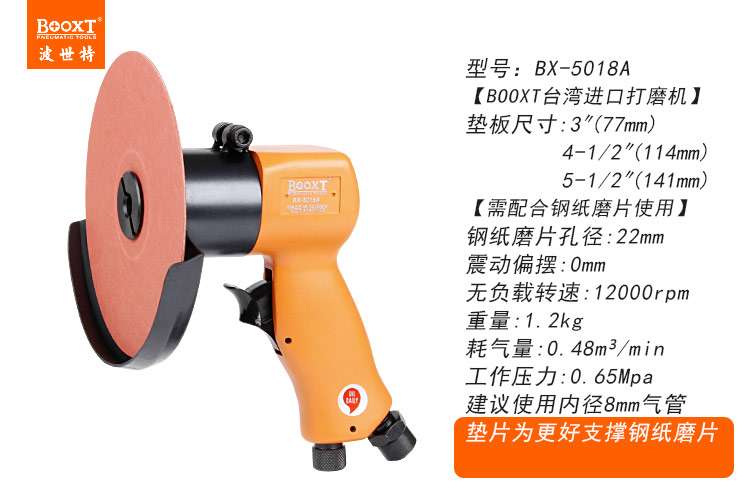 東莞市強勁五金工具有限公司提供臺灣BOOXT波世特品牌氣動工具,氣動鋼紙磨片打磨機BX-5018A廠家直銷,首件享特價。咨詢熱線:4008301980