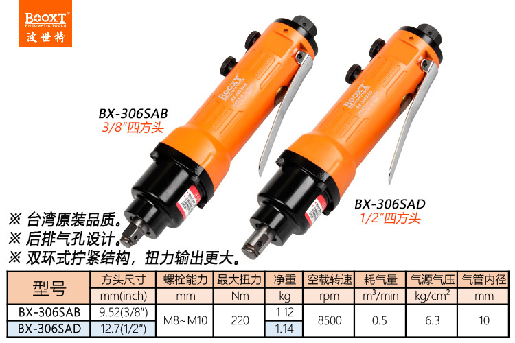 東莞市強(qiáng)勁五金工具有限公司提供臺(tái)灣BOOXT波世特品牌氣動(dòng)工具,風(fēng)動(dòng)扳手BX-306SAB廠家直銷,首件享特價(jià)。咨詢熱線:4008301980