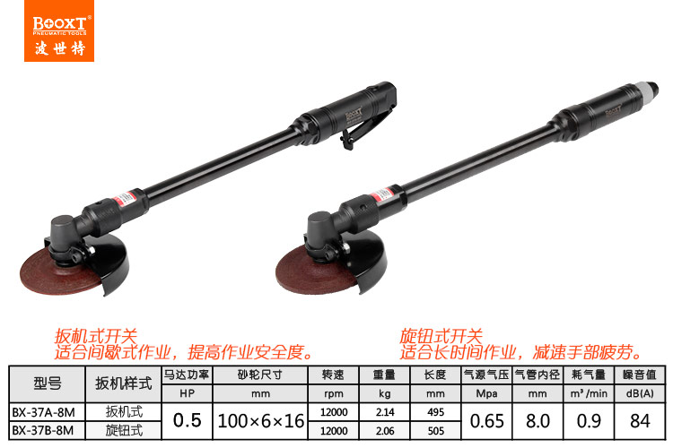 東莞市強勁五金工具有限公司提供臺灣BOOXT波世特品牌氣動工具,加長氣動角磨機BX-37B-8M廠家直銷,首件享特價。咨詢熱線:4008301980