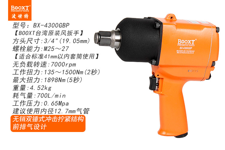 東莞市強勁五金工具有限公司提供臺灣BOOXT波世特品牌氣動工具,無銷式氣動扳手BX-4300GBP廠家直銷,首件享特價。咨詢熱線:4008301980