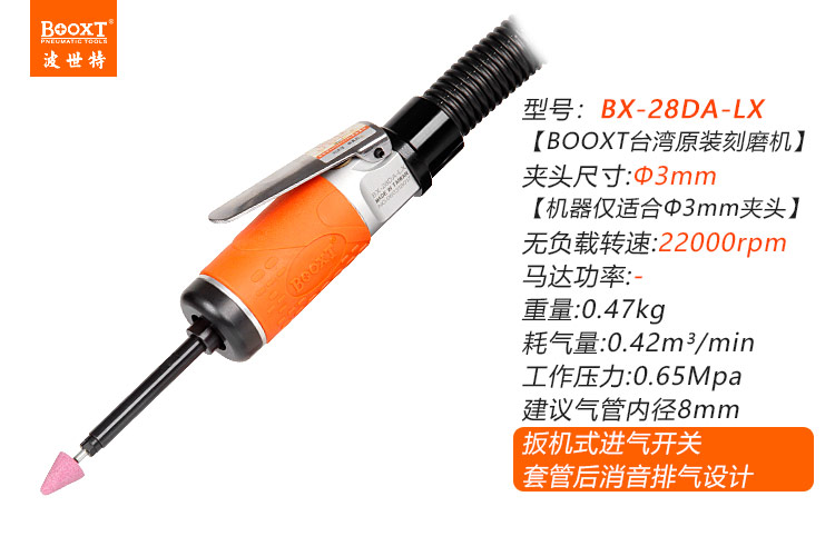 東莞市強勁五金工具有限公司提供臺灣BOOXT波世特品牌氣動工具,消音超細桿風磨機BX-28DA-LX廠家直銷,首件享特價。咨詢熱線:4008301980