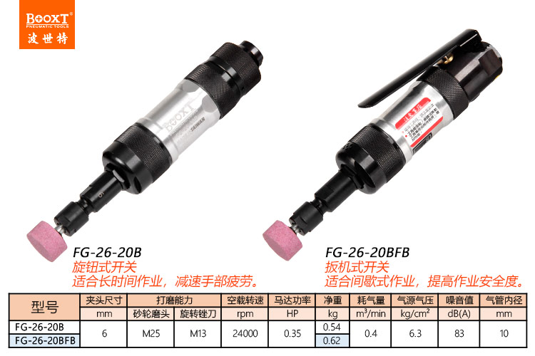 東莞市強勁五金工具有限公司提供臺灣BOOXT波世特品牌氣動工具,高精度風磨機FG-26-20B廠家直銷,首件享特價。咨詢熱線:4008301980