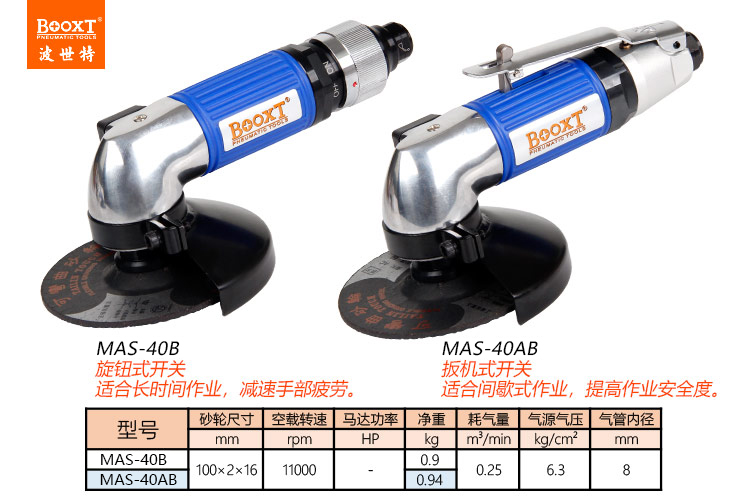 東莞市強(qiáng)勁五金工具有限公司提供臺(tái)灣BOOXT波世特品牌氣動(dòng)工具,輕型風(fēng)動(dòng)角磨機(jī)MAS-40AB廠家直銷,首件享特價(jià)。咨詢熱線:4008301980