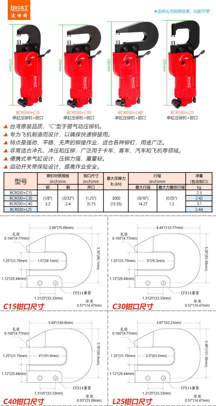 東莞市強勁五金工具有限公司提供臺灣BOOXT波世特品牌氣動工具,C式氣動壓鉚機BCR030+C15廠家直銷,首件享特價。咨詢熱線:4008301980