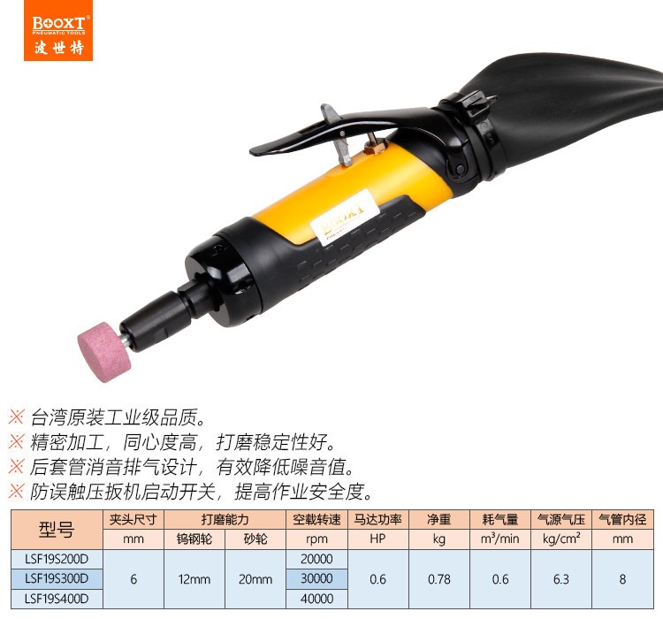 東莞市強勁五金工具有限公司提供臺灣BOOXT波世特品牌氣動工具,帶消音氣動風磨機LSF19-S200D廠家直銷,首件享特價。咨詢熱線:4008301980