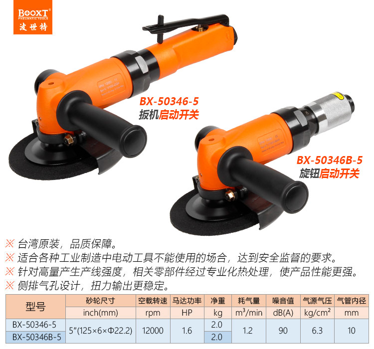 東莞市強勁五金工具有限公司提供臺灣BOOXT波世特品牌氣動工具,大馬力氣動角磨機BX-50346B-5廠家直銷,首件享特價。咨詢熱線:4008301980