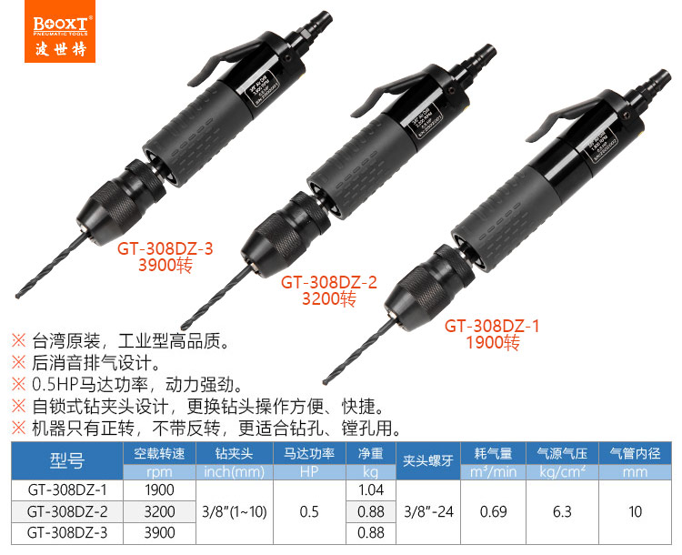 東莞市強(qiáng)勁五金工具有限公司提供臺(tái)灣BOOXT波世特品牌氣動(dòng)工具,直型氣鉆GT-308DZ-3廠家直銷,首件享特價(jià)。咨詢熱線:4008301980
