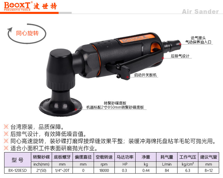 東莞強勁五金工具有限公司提供臺灣BOOXT波世特氣動工具,氣動砂碟打磨機BX-120ESD廠家直銷,首件享特價。咨詢熱線:4008301980