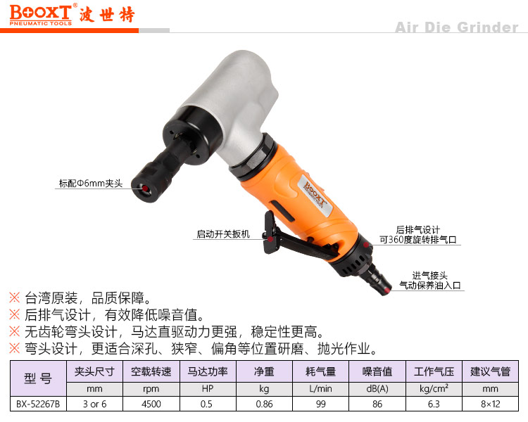 東莞市強(qiáng)勁五金工具有限公司提供臺(tái)灣BOOXT波世特品牌氣動(dòng)工具,4500轉(zhuǎn)風(fēng)磨機(jī)BX-52267B廠家直銷,首件享特價(jià)。咨詢熱線:4008301980
