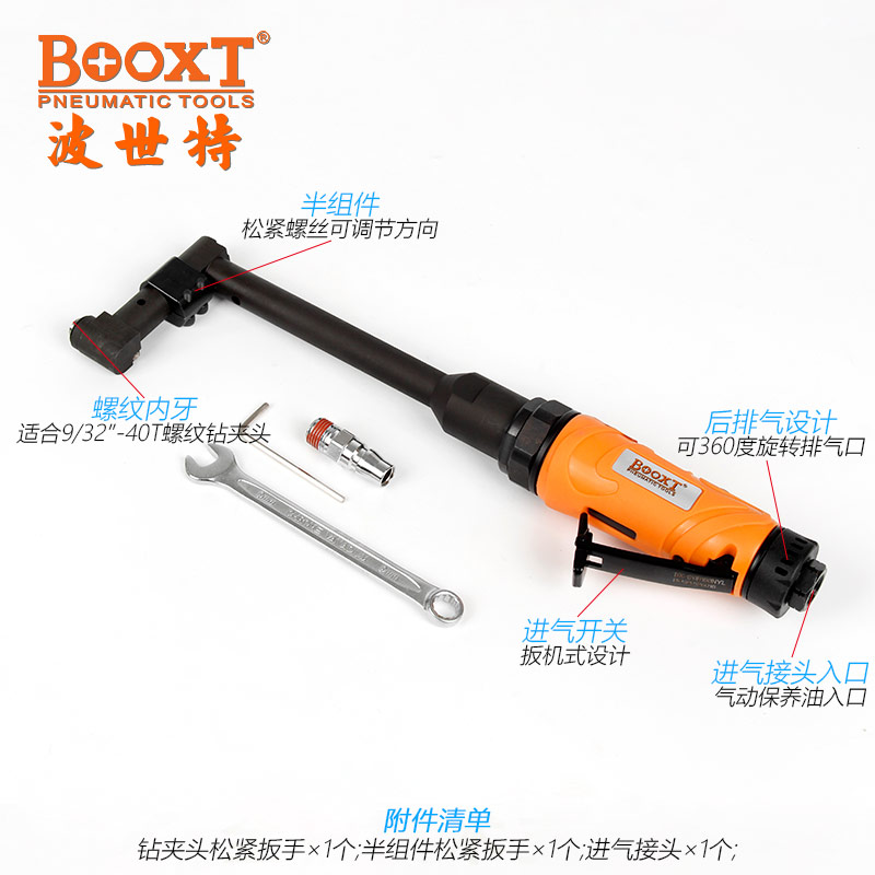 東莞市強勁五金工具有限公司提供臺灣BOOXT波世特品牌氣動工具,加長偏角氣動鉆BX-120B180NYL廠家直銷,首件享特價。咨詢熱線:4008301980