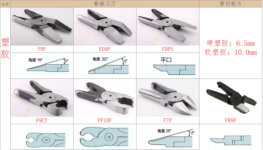 2.注意材質(zhì):材質(zhì)對選配刀刃非常重要,例如客戶要剪的銅鐵、材質(zhì)有鍍鈦、鍍烙、塑料材質(zhì)、加纖維超過20% 時(shí),一般刀刃不是剪不斷,就是使用壽命大大減少,塑料還容易在剪斷過程中碎裂。在這情形S刀刃應(yīng)選擇Z刀,塑料則建議使用電熱剪。