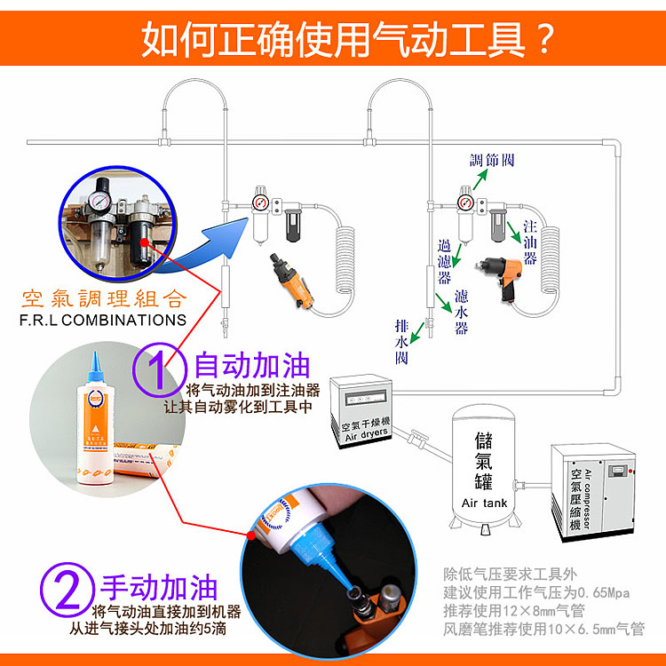正確加氣動(dòng)油的方法,參考如下圖: