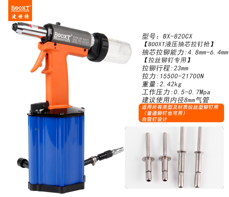 東莞市強(qiáng)勁五金工具有限公司提供臺灣BOOXT波世特品牌氣動工具,氣動拉鉚釘槍BX-820CX廠家直銷,首件享特價(jià)。咨詢熱線:4008301980