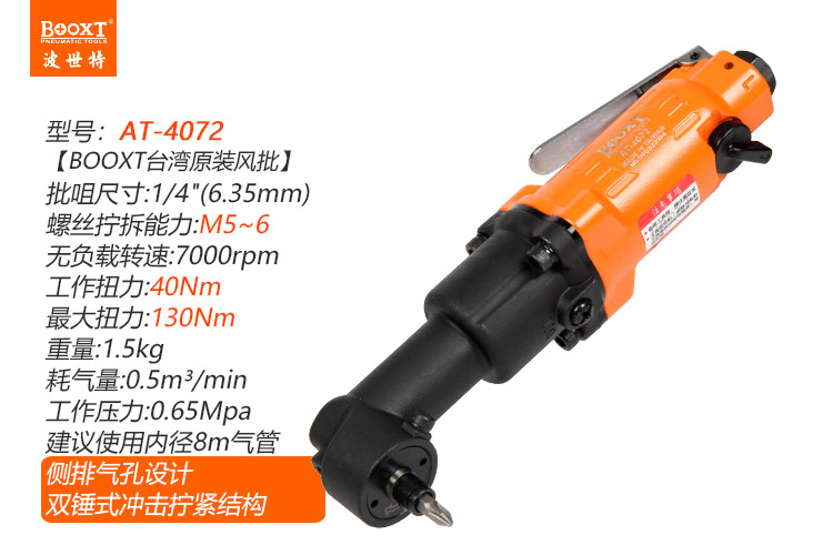 東莞市強勁五金工具有限公司提供臺灣BOOXT波世特品牌氣動工具,90度氣動螺絲刀AT-4072廠家直銷,首件享特價。咨詢熱線:4008301980