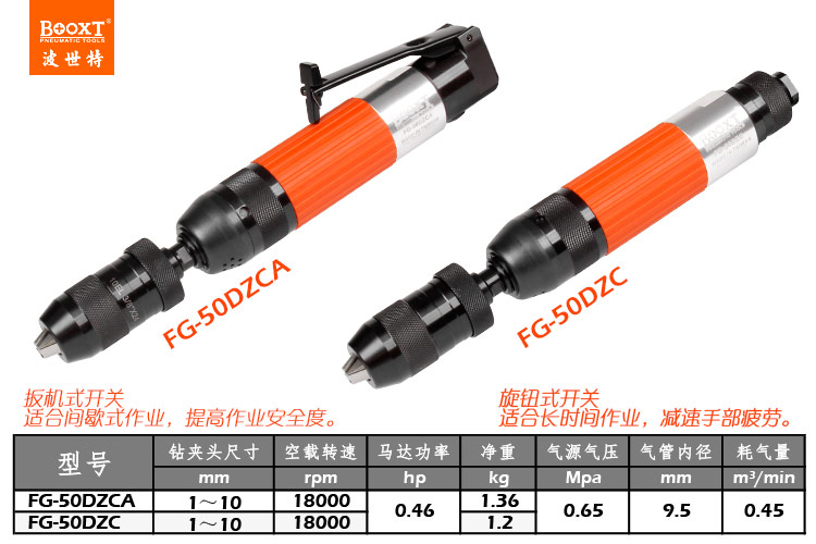 東莞市強(qiáng)勁五金工具有限公司提供臺灣BOOXT波世特品牌氣動工具,自鎖氣動鉆FG-50DZC廠家直銷,首件享特價(jià)。咨詢熱線:4008301980