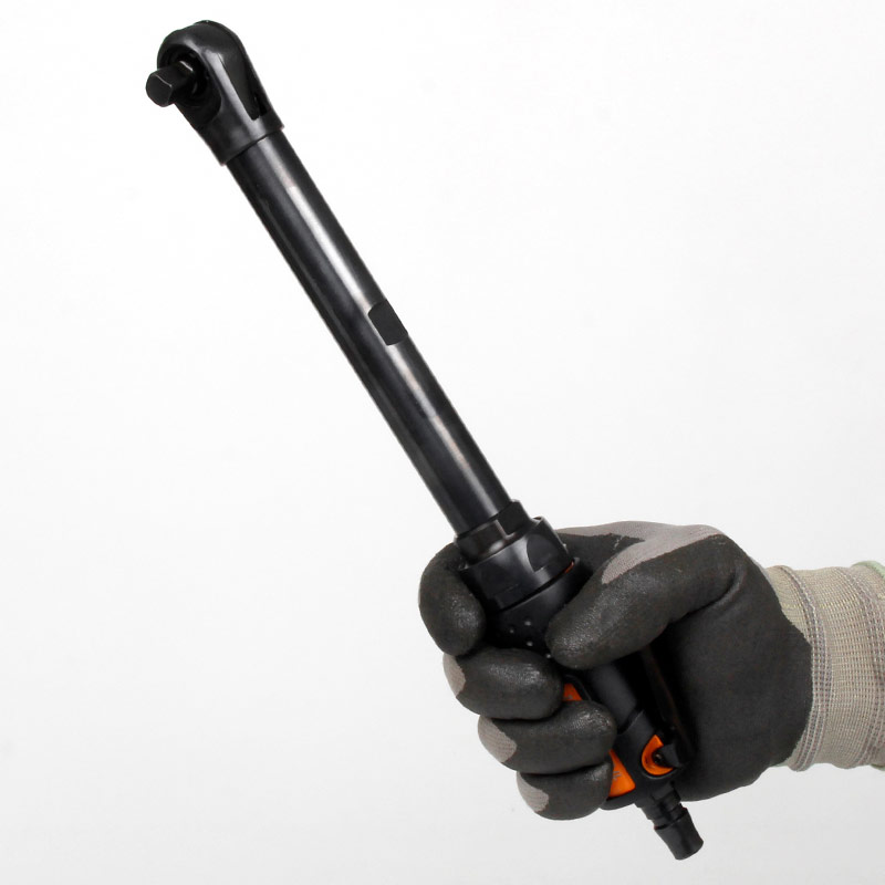 加長(zhǎng)氣動(dòng)棘輪扳手特點(diǎn):(重力壓鑄外殼,強(qiáng)度更高不變形,提高耐用度)