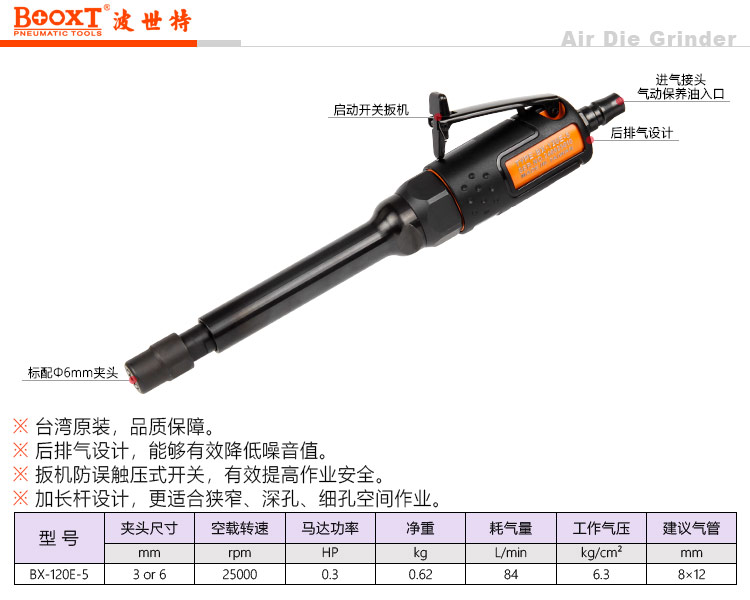 東莞市強(qiáng)勁五金工具有限公司提供臺灣BOOXT波世特品牌氣動工具,加長氣動刻磨機(jī)BX-120E-5廠家直銷,首件享特價。咨詢熱線:4008301980