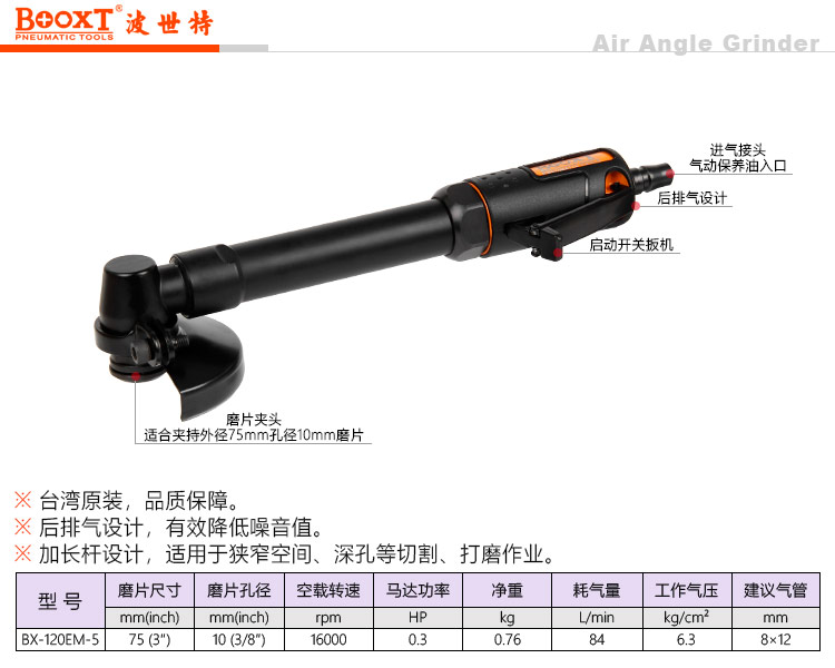 東莞市強勁五金工具有限公司提供臺灣BOOXT波世特品牌氣動工具,加長風動角磨機BX-120EM-5廠家直銷,首件享特價。咨詢熱線:4008301980