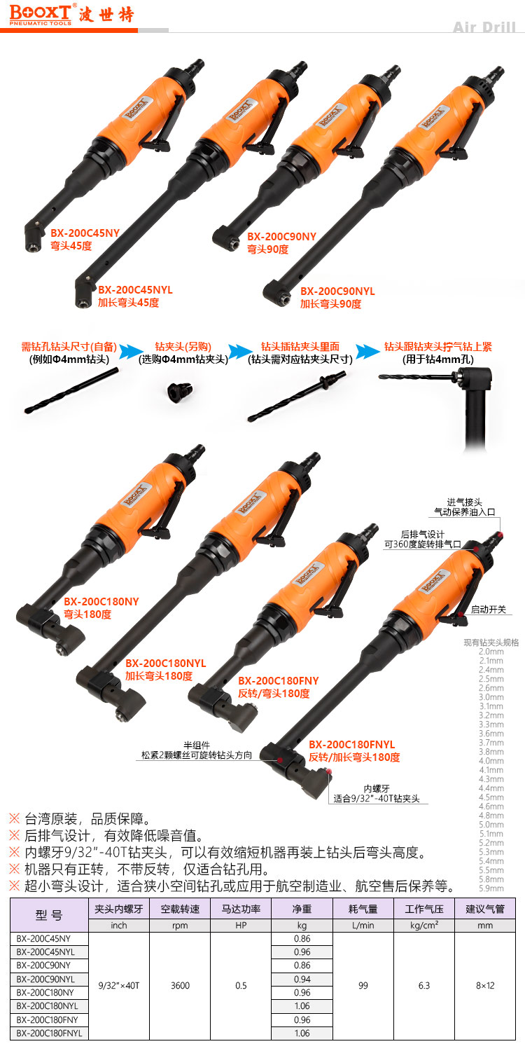 東莞市強勁五金工具有限公司提供臺灣BOOXT波世特品牌氣動工具,航空偏角蛇鉆BX-200C180NY廠家直銷,首件享特價。咨詢熱線:4008301980