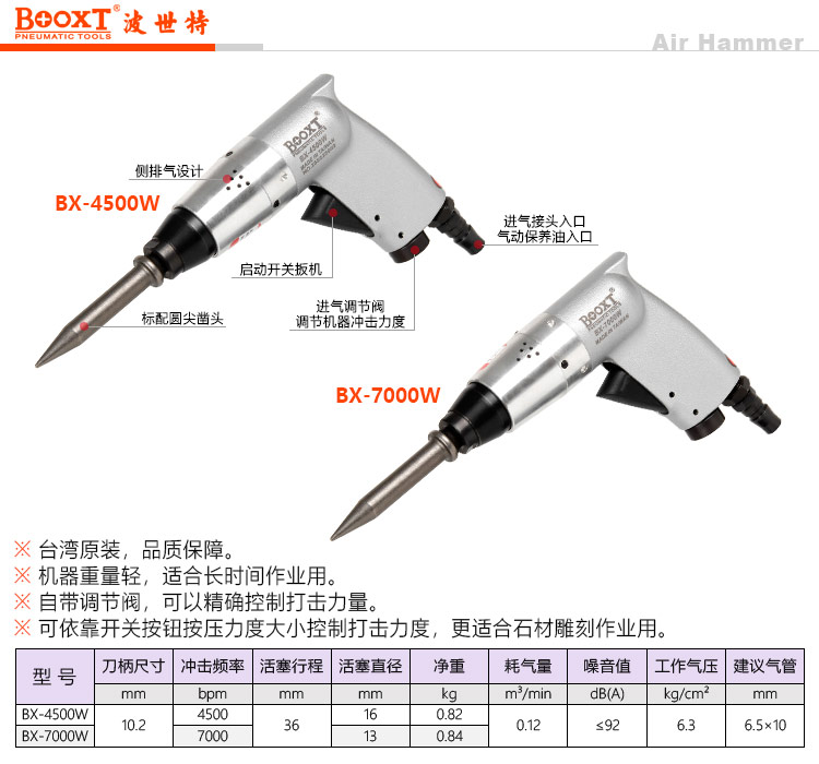 東莞市強勁五金工具提供臺灣BOOXT波世特品牌,氣動石材精密雕刻鏟BX-7000W廠家直銷,首件享特價。咨詢熱線:4008301980