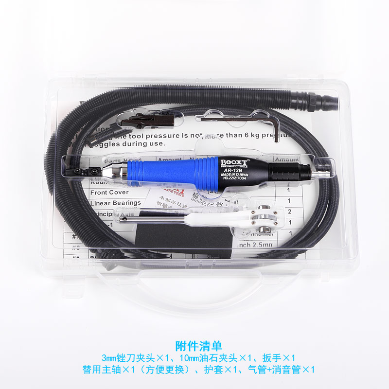 • 產(chǎn)品參數(shù): 夾頭尺寸:3mm;行程:1.2mm;沖程數(shù):25000bpm;長度:200mm;重量:0.2kg;耗氣量:0.21立方米/分鐘;推薦氣管尺寸:6.5mm